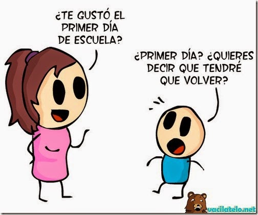 En concreto para los niñ@s que acuden por primera vez al colegio supone un cambio drástico; cambio que las familias, el profesorado y los propios alumn@s-compañer@s podemos minimizar mediante: La empatía, el diálogo y el buen humor. Y hablando de buen humor os dejo una serie de chistes gráficos sobre el inicio del curso escolar, no sin antes desearos que este 2014-2015 resulte un curso provechoso y ameno para todos en general y, en particular, para la comunidad educativa del CEIP "Ave María" de Palencia.