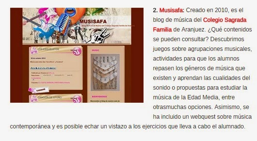 El pasado 28 de octubre la revista digital Educación tres punto cero recogió un artículo, en el apartado "Experiencias" donde se nombran varios blogs de música. ¡¡Y AHÍ ESTAMOS NOSOTROS!!