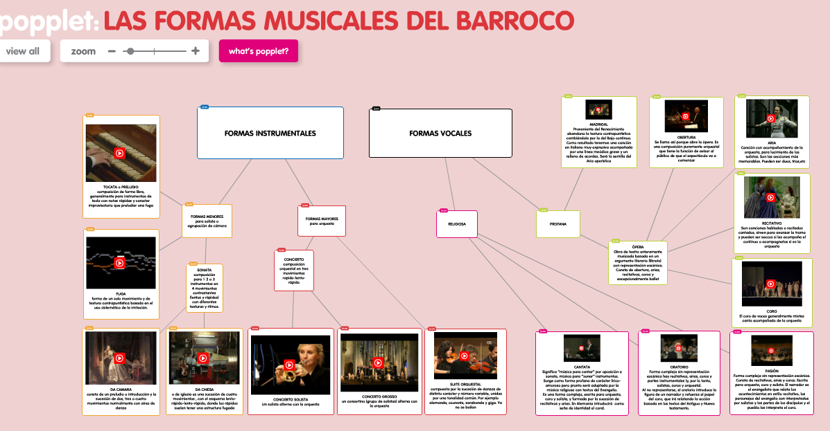 Popplet trobarem les diferents formes vocals i instrumentals barroques completades amb insteressants vídeos.