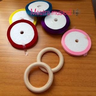 Hola mestres!!! Compartisc amb vosaltres el nou material que estic fent per a les meues classes de música. Són unes anelles amb tires de colors per ballar danses i fer activitats de moviment. Molt útils en les classes d'infantil i els primers cursos de primària.