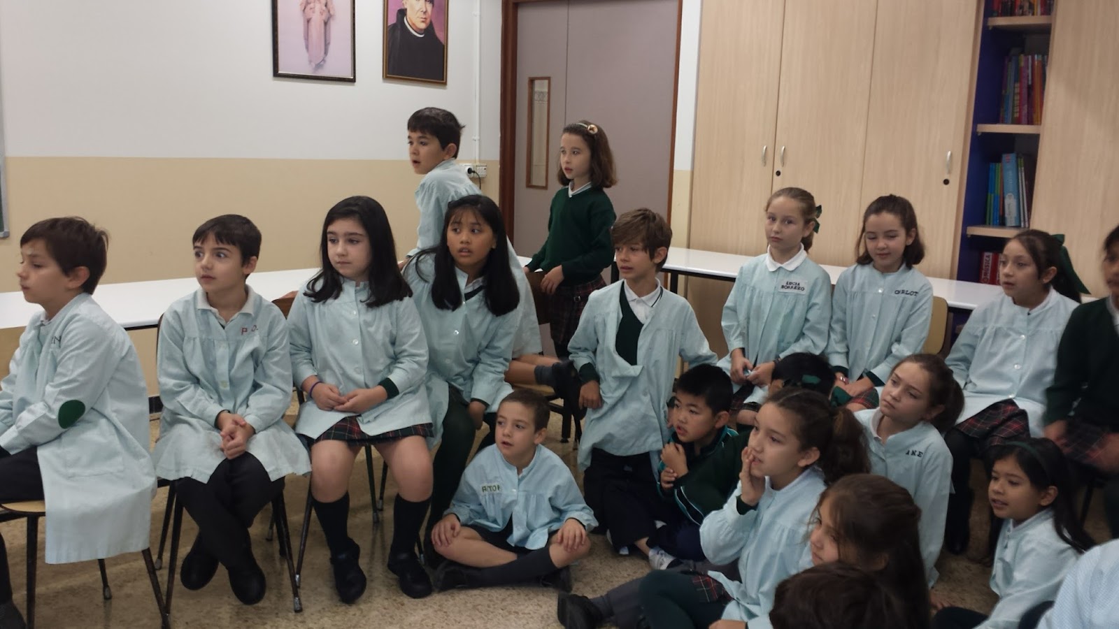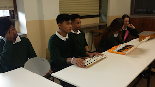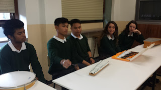 Goizane, María, Jeric, Jerico  and Khalil played and sang the song BANAHA, an african song from Congo, in front of some students .