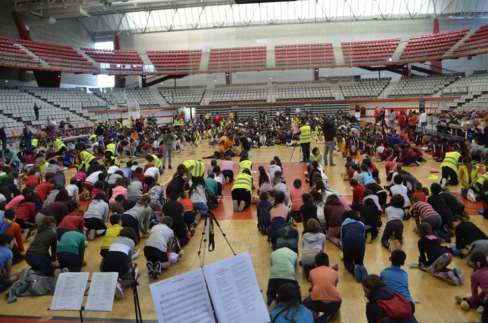 Por la mañana logramos superar el récord de RCP simultánea junto a los casi 1000 escolares que se congregaron en el  Palacio de Deportes de Gijón. Además interpretamos varias canciones a las que se han adaptado la letra para que sirvan como recordatorio sobre los pasos que hay que seguir a la hora de detectar y realizar una RCP.