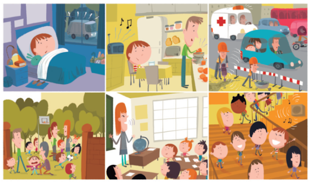 En nuestra primera semana musical hemos comenzado conociendo los sonidos que nos rodean desde que nos levantamos hasta que nos acostamos. Un día en el que nos rodeamos de sonido, ruido y silencio. También hemos aprendido los símbolos para estos conceptos con mucho arte.